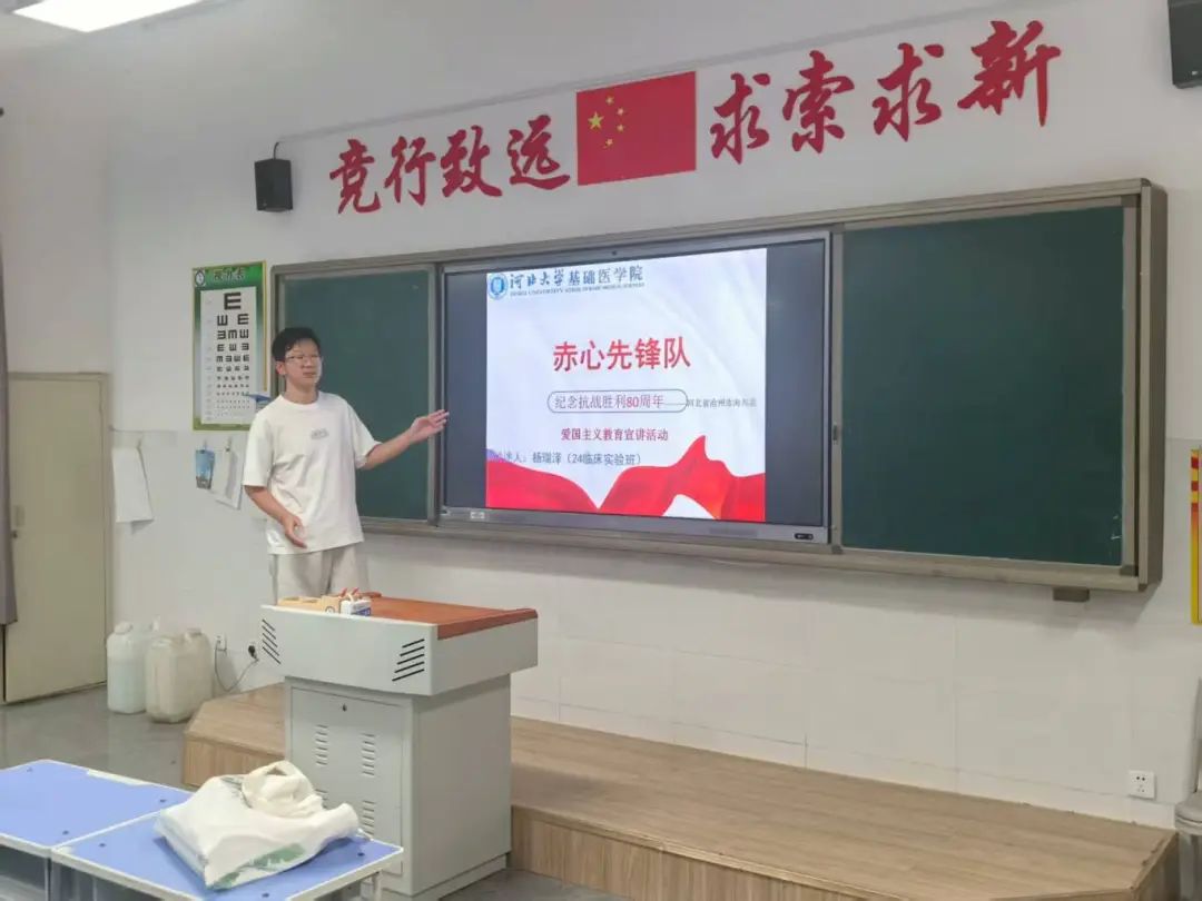 在沧州海兴县,团队以“爱国主义精神”为桥,与大学生群体深度对话。专题宣讲会上,队员们拆解“爱国主义的时代内涵”,从历史纵深到当代价值,引导青年思考“爱国何为、青年何为”;团队成员前往石家庄一中开展主题讲座,聚焦石家庄战役“三个第一”,用战役中的担当与牺牲,点燃学子责任意识,让红色精神在青春对话中迸发新火。