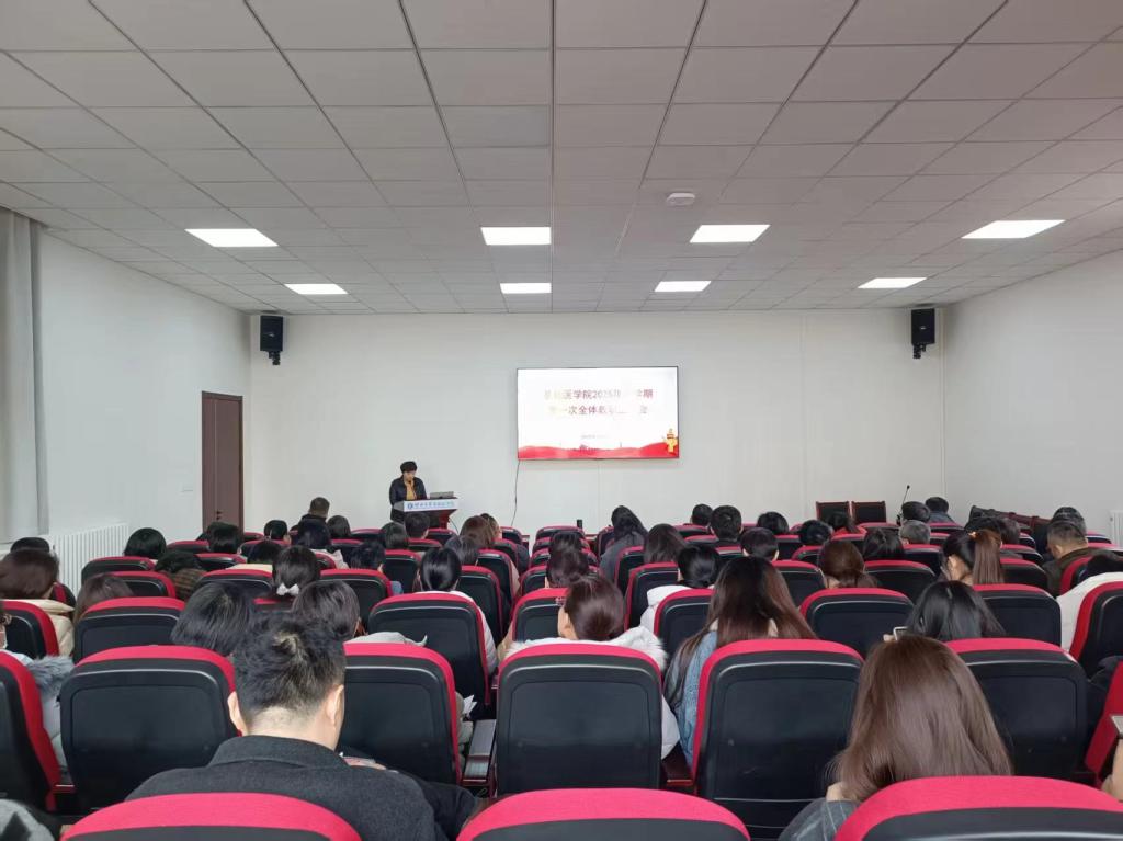 党委书记张洪义在会上作动员讲话,强调本年度是学院深化教育教学改革、推进学科高质量发展的关键之年。他要求全体教职工切实提高政治站位,以党建引领业务发展,聚焦人才培养核心任务,全面提升教学科研水平。张洪义指出,全体教师要严守《新时代高校教师职业行为十项准则》,将“立德树人”根本任务贯穿教育教学全过程,以“四有”好老师标准筑牢师德根基,营造风清气正的育人环境。